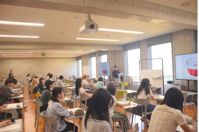 「キャッチコピーづくりワークショップ」や「ゲーム業界大研究」、「大学生活デザインワーク」など、卒業生や企業経営者といった社会の第一線で活躍する方々をゲスト講師に迎えた講座や4年内定者による報告会など多数実施しています。グループワークや講師との意見交換を通して、将来のキャリアや制作活動に活かせるきっかけをつくります。