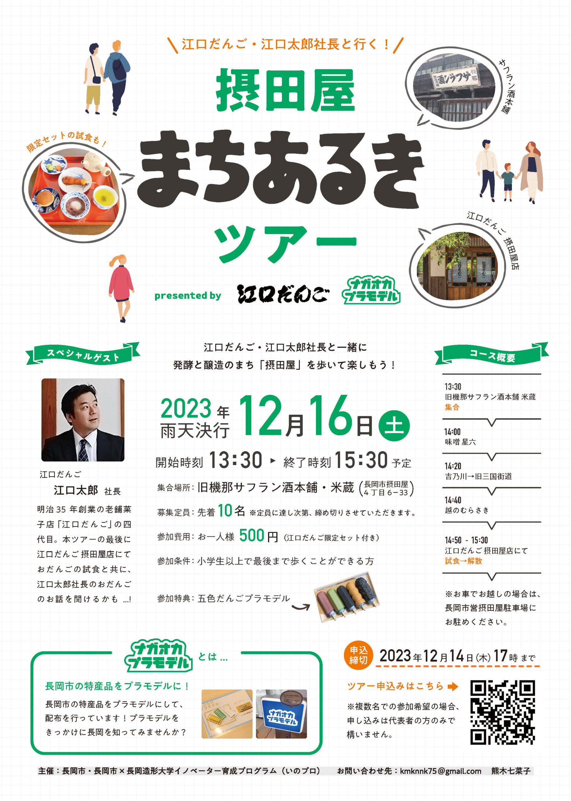 また、「江口だんご本店へ行く手段がない!」という方向けに、熊木さんと江口だんご・江口太郎社長と一緒に摂田屋を歩く「摂田屋まちあるきツアー」もあります。