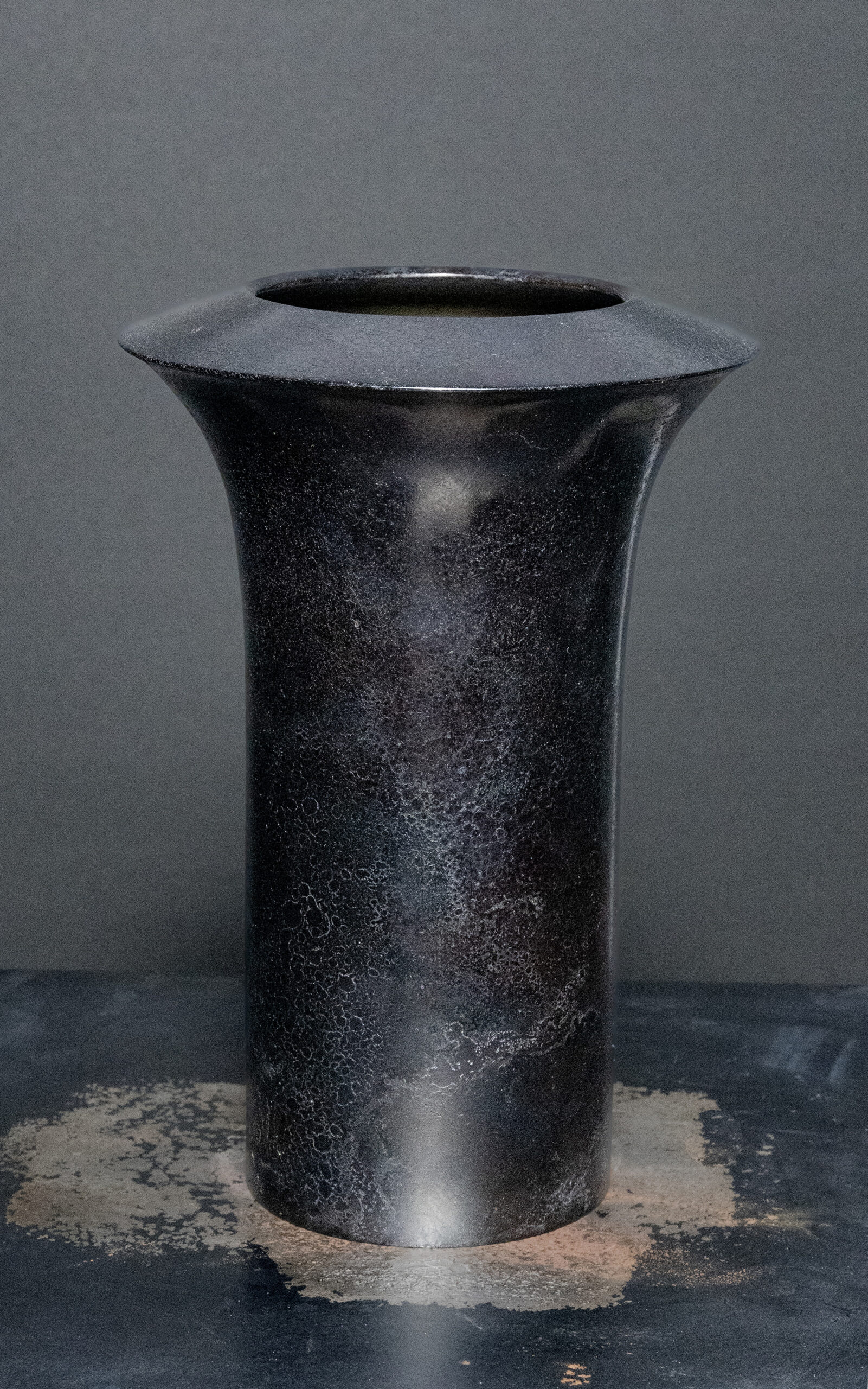 タイトル:「鋳銅焼肌紋花器 黒宴」