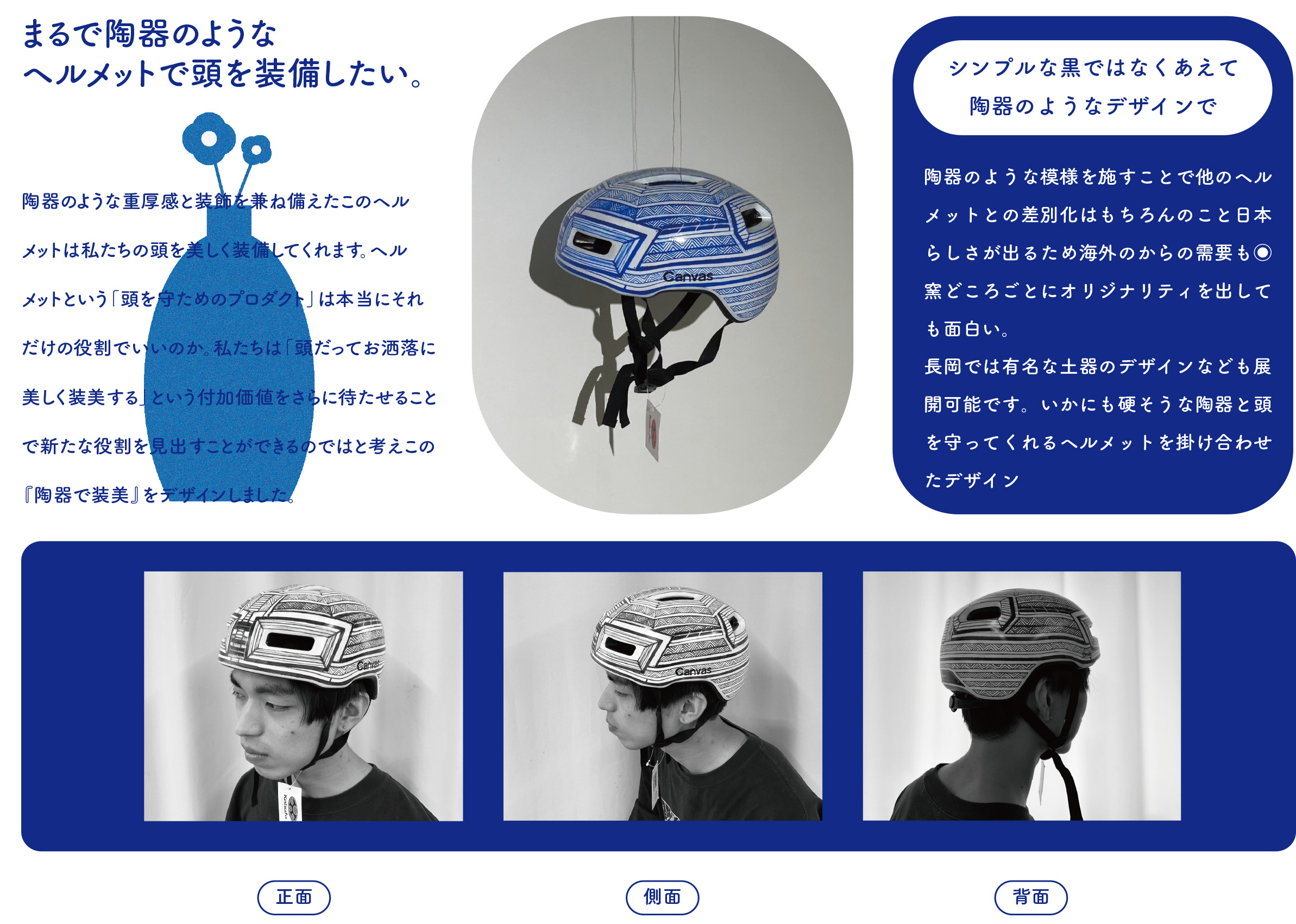 本コンペは一般財団法人絆基金様からいただいた寄附金で実施しており、応募作品の制作には、昨年12月、あいおいニッセイ同和損害保険株式会社新潟支店様から贈呈いただいたヘルメットを活用しました。