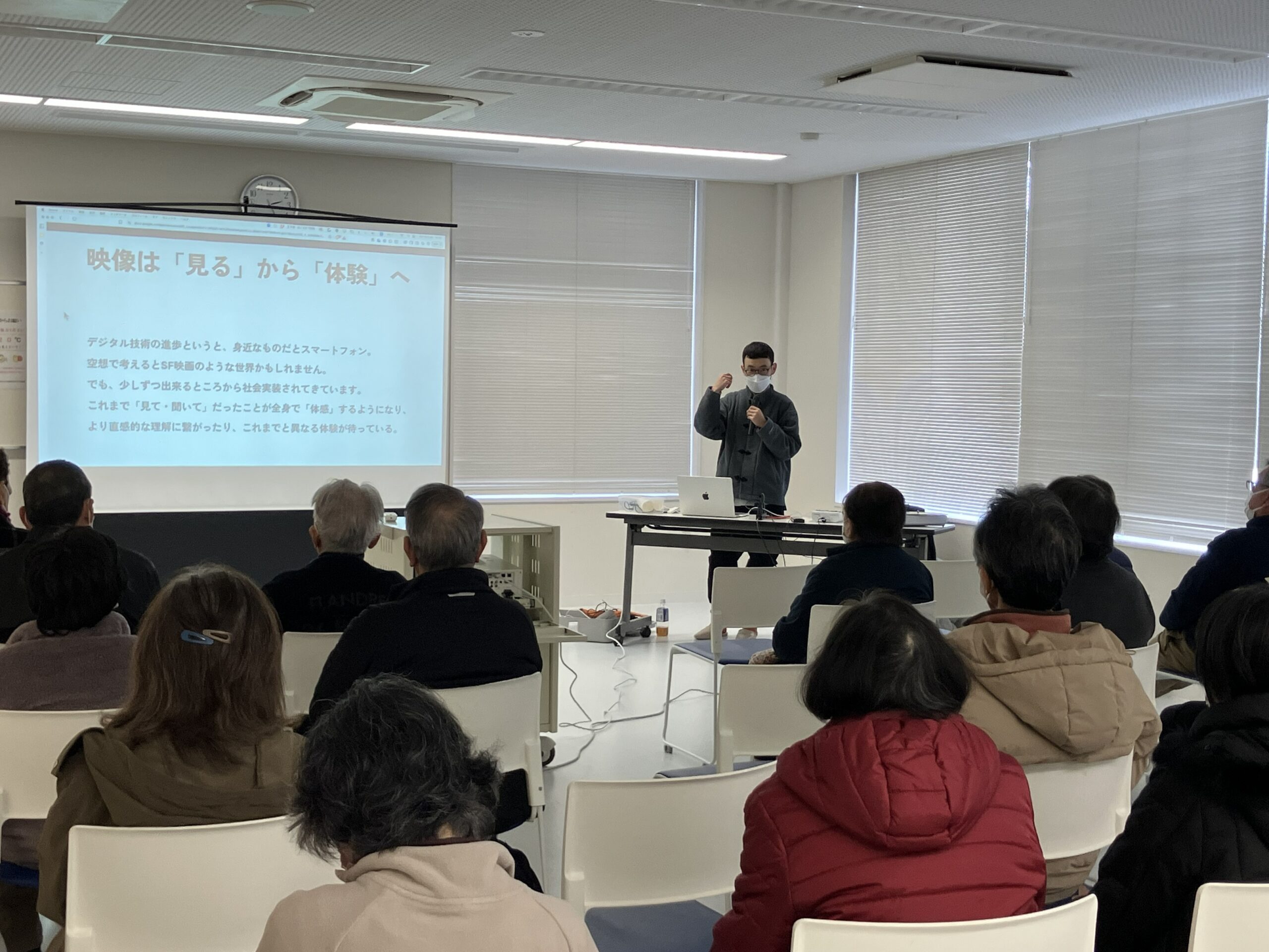 2月19日(木)、長岡市巻島町の上川西コミュニティセンターにて、本学デザイン学科の伊達 亘助教が「映像最前線」というテーマで出張講義を行いました。