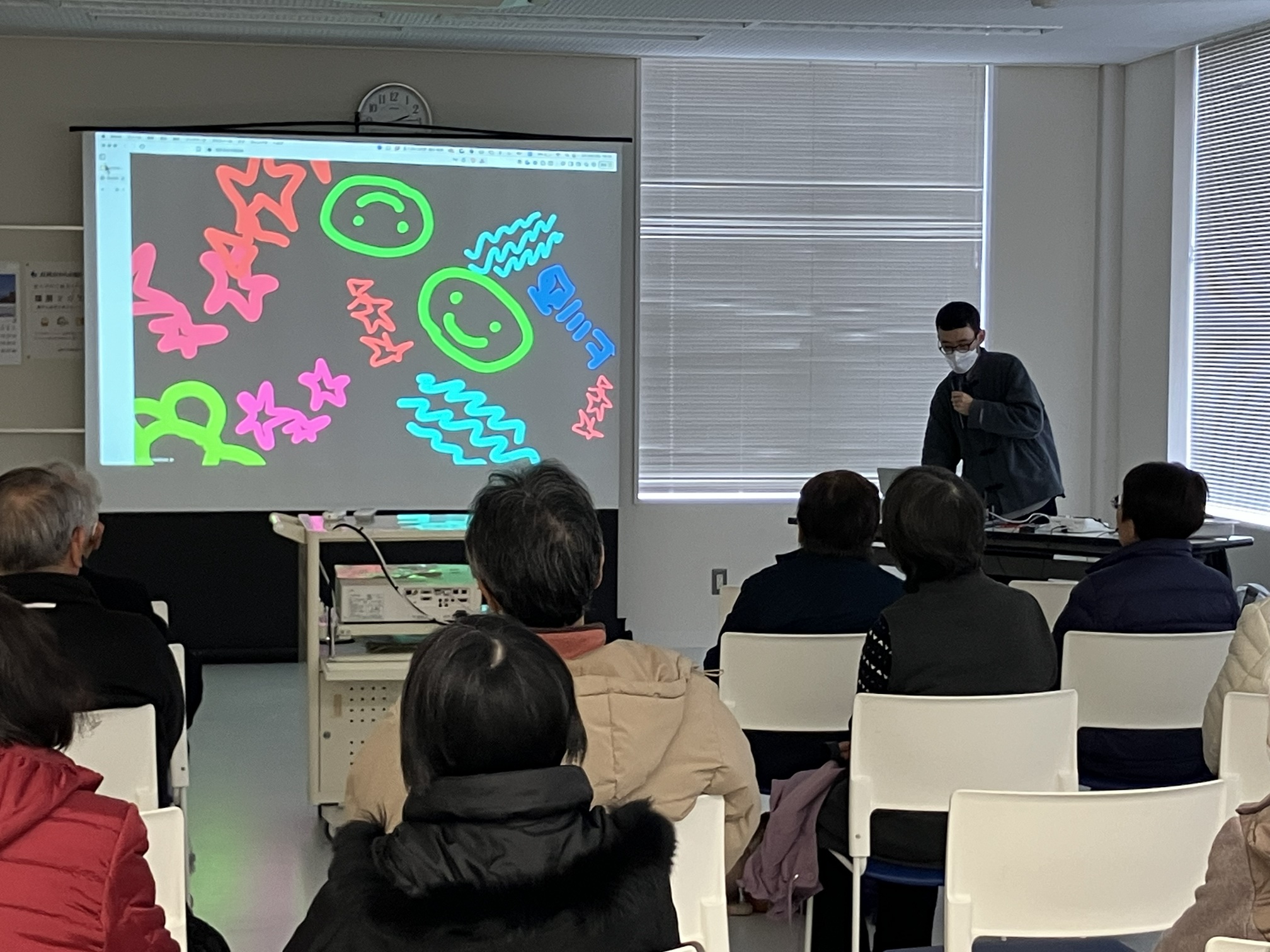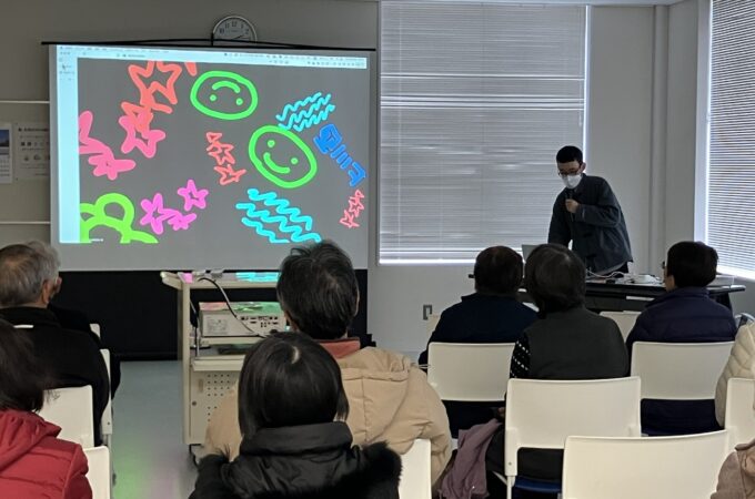 本講義は、上川西コミュニティセンター主催の生涯学習教室「ニコニコ大学」の一環として実施されたものです。本学教員は10年以上前から年1回程度、同講座に登壇しており、当日は地域の皆さま約30名にご参加いただきました。